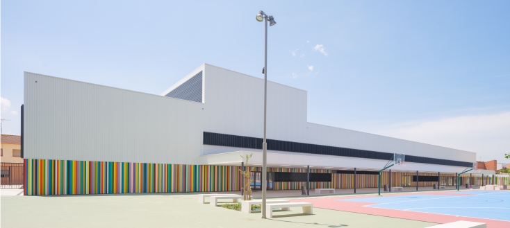 Europerfil EUROLINE architectural metal profile (variable width). Nerve height 24 mm, widths available 100, 150, 200 and 250 mm, and thickness from 1mm to 1.20 mm. Galvanised and pre-lacquered steel (EN 10169) in standard Europerfil colours and coatings. CE marking (EN 14782). Auxiliary complements: Application perforation for lighting and natural ventilation, horizontal and vertical folded corners.