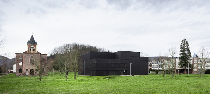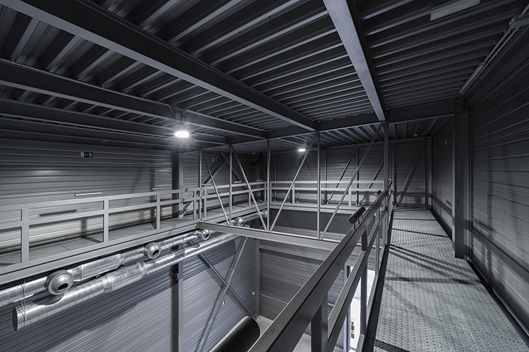 Product: Architectural wall profile Atenea (perforated and non perforated) in color 8019, wall liner tray Eurobac 150 (perforated and non perforated R3 T6) in color 9006 | Architecture: ByE Arquitectos | Photography: © Mikel Muruzabal