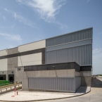 Profil métallique Giza FA en Gris RAL 9006, profil métallique Eurobase 48 pour application en toiture deck en Blanc RAL 9010, et panneau sandwich de façade Galatea 1100 en Gris RAL 9006, le tout avec revêtement Esmeralda Plus.