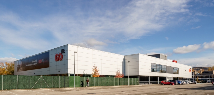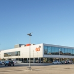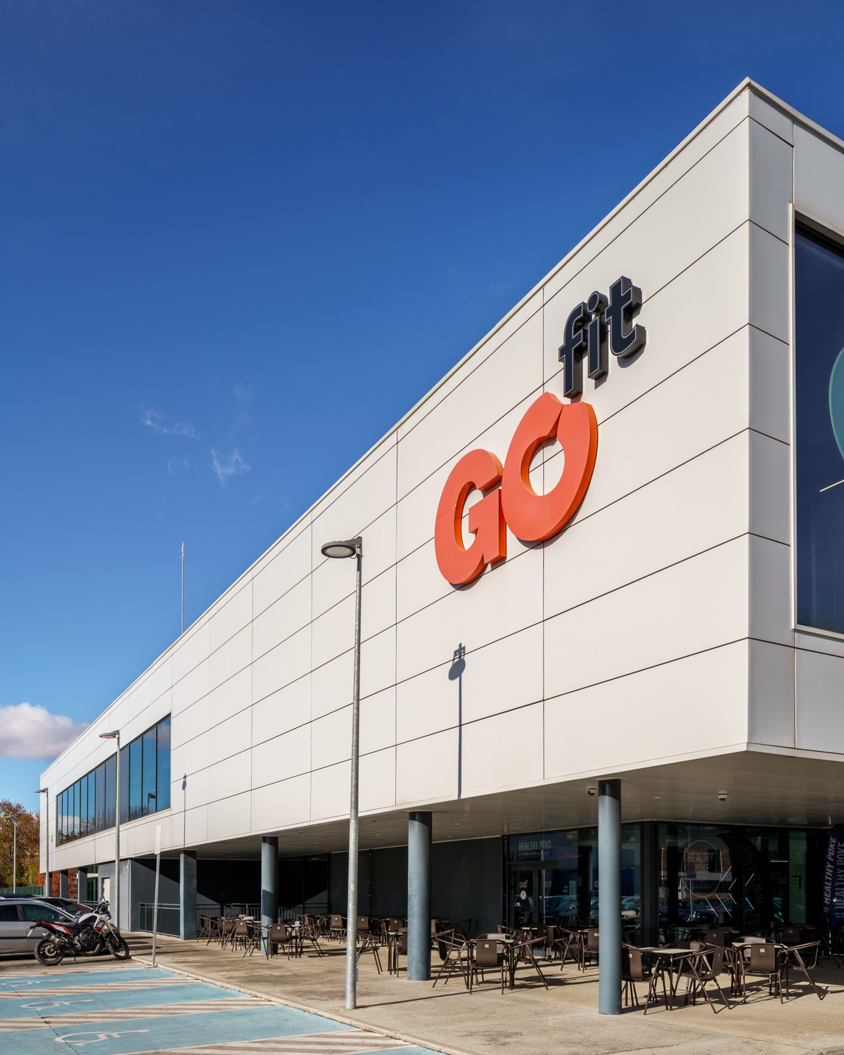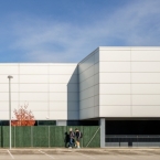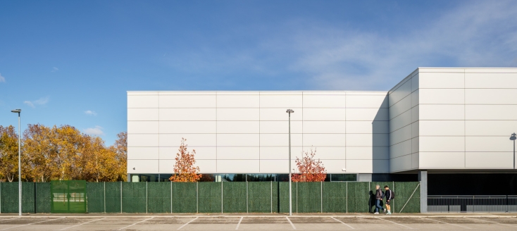 Paneles sándwich metálicos de fachada arquitectónica Etna Advance 1000 y Etna Pro 1000 en color Blanco 880 y revestimiento Esmeralda Plus. Panel sándwich de cubierta Delfos 1150 en color Blanco 880 en revestimiento Esmeralda Plus, y color Blanco RAL 9003 y revestimiento Zafiro Elit.
