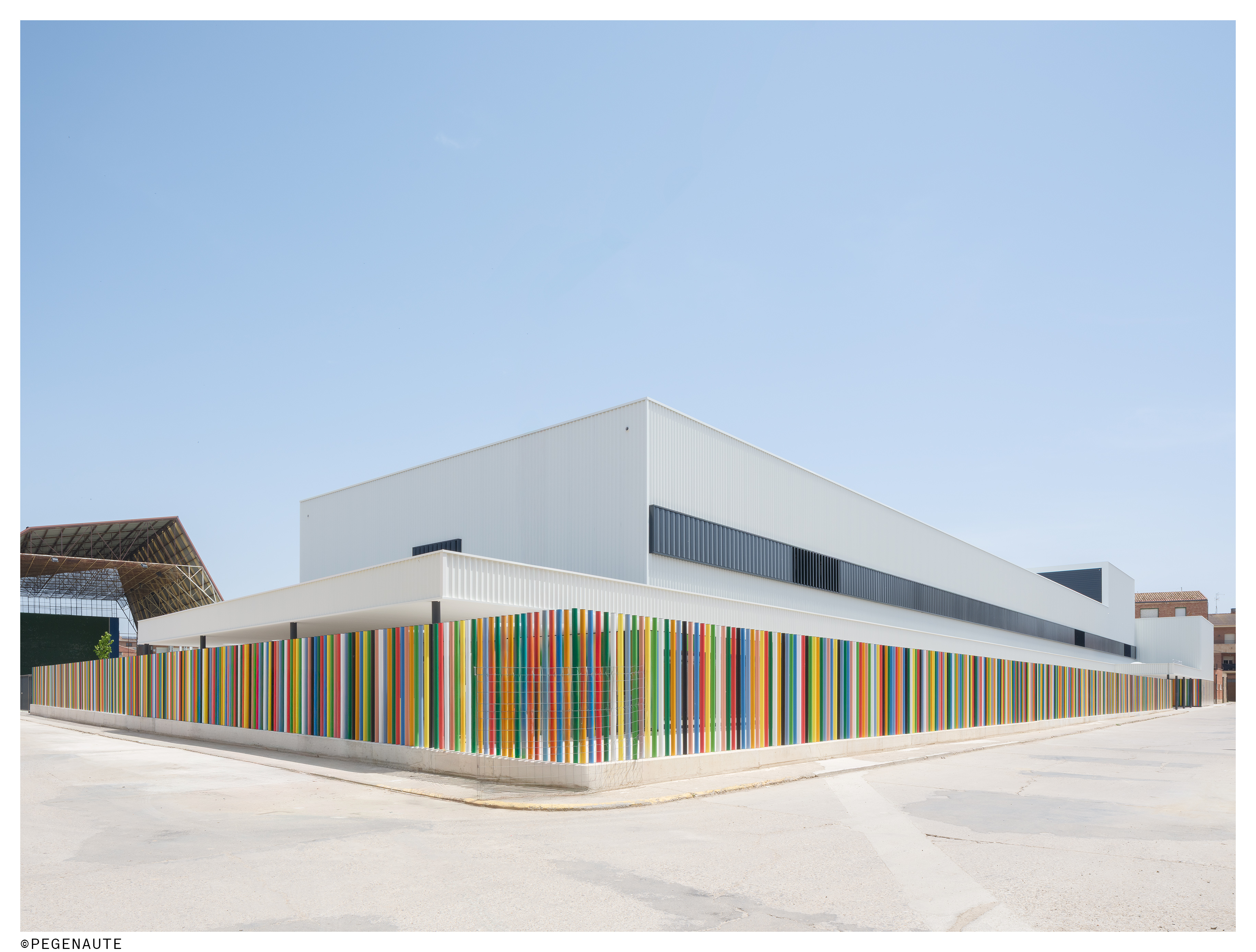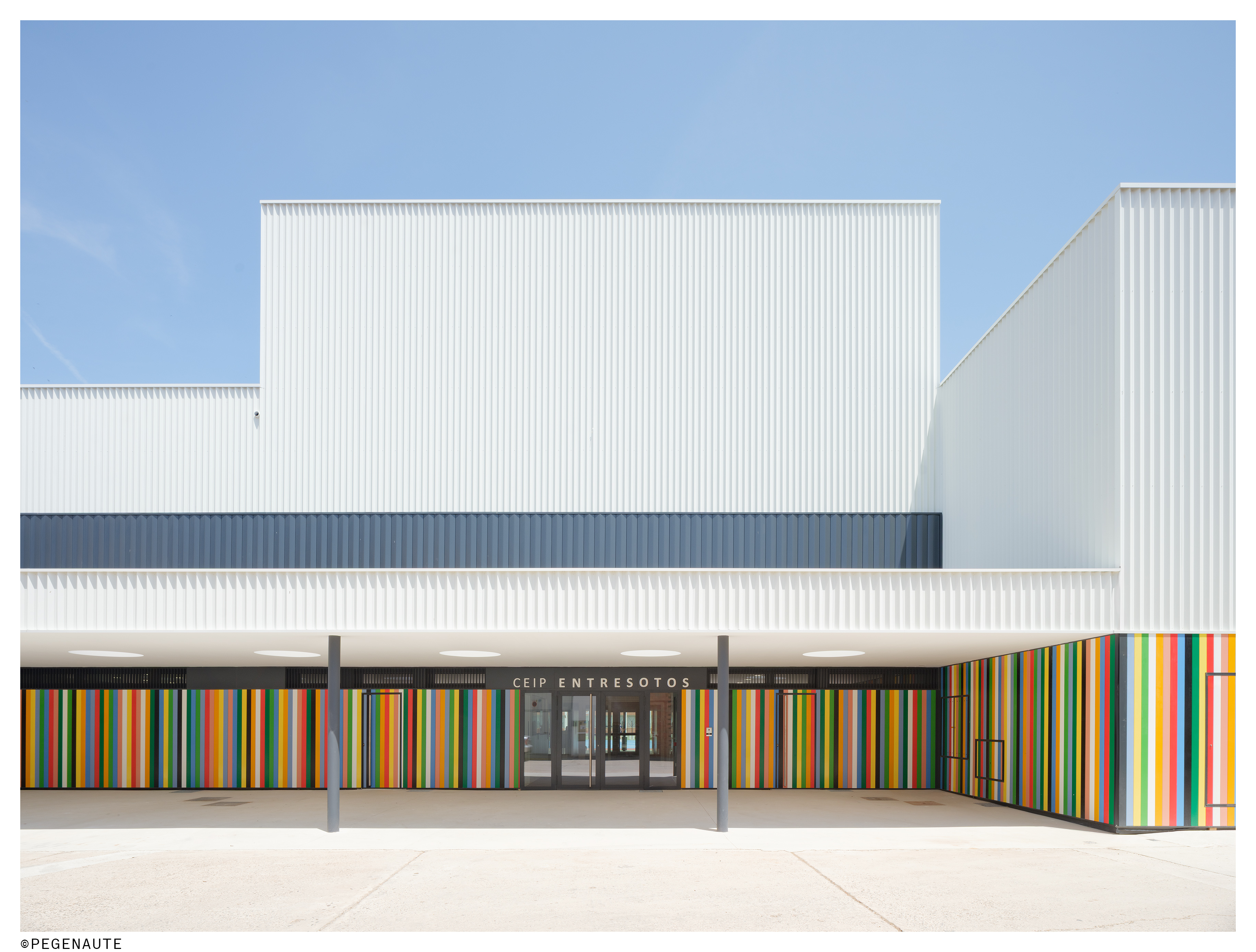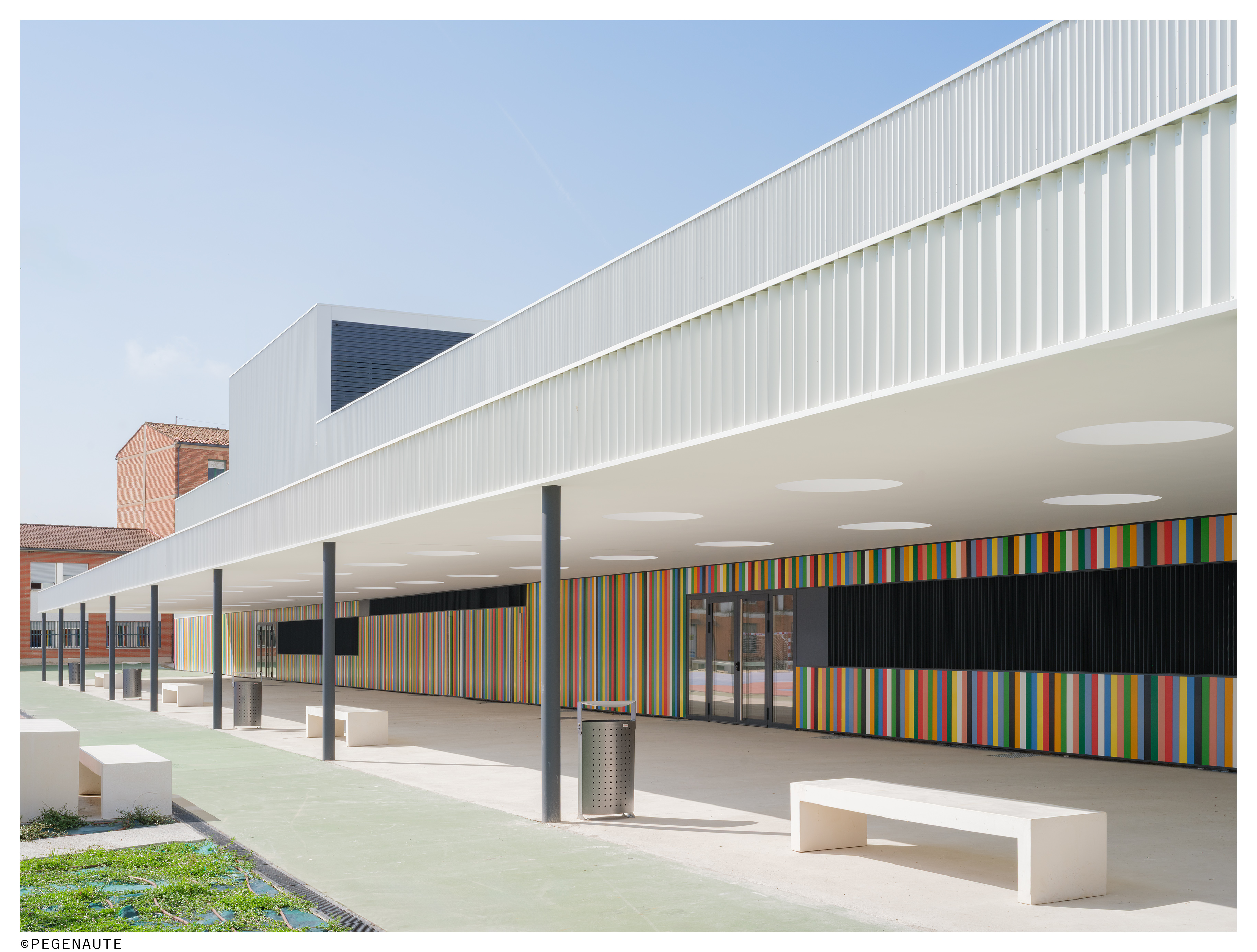 Perfil metálico Keops en color Blanco RAL 9010 en revestimiento Esmeralda Plus y perfil metálico Euroline 100 en color Blanco 880 y revestimiento Esmeralda Basic, postlacado en 10 colores distintos. | Arquitectura: Peralta Ayesa SLP | Fotografía: © Pedro Pegenaute | Constructora: Aransa Construcción