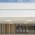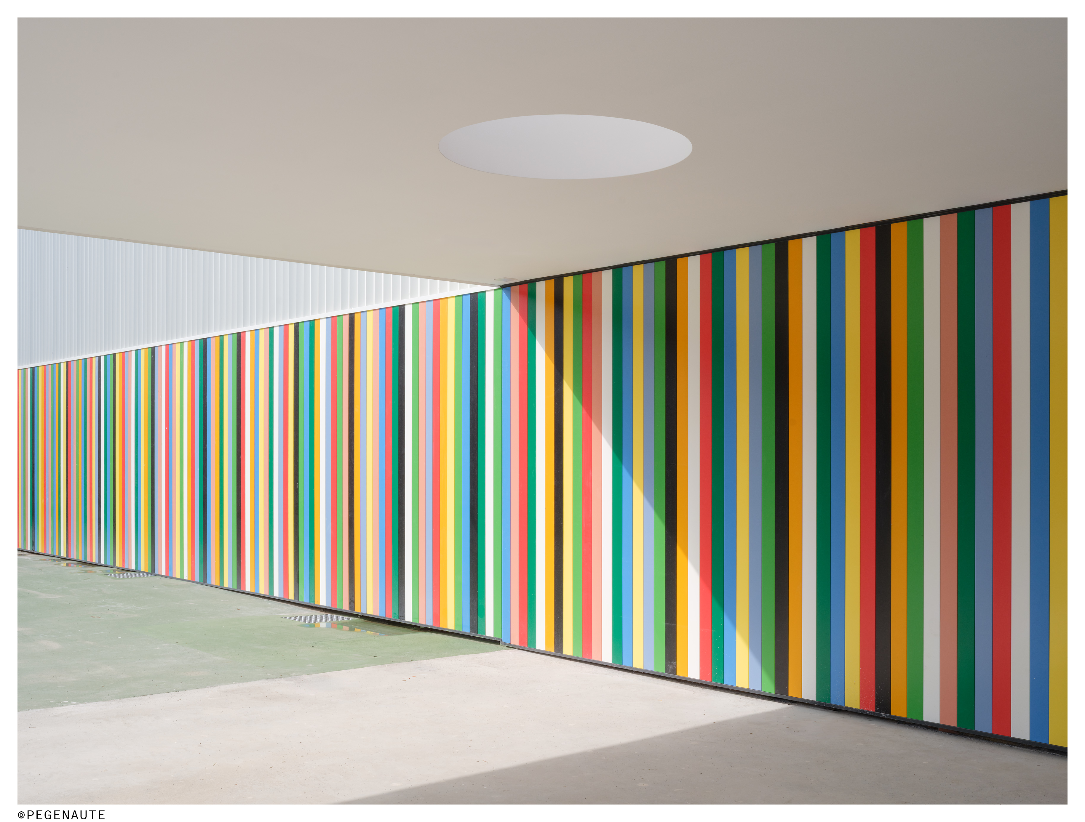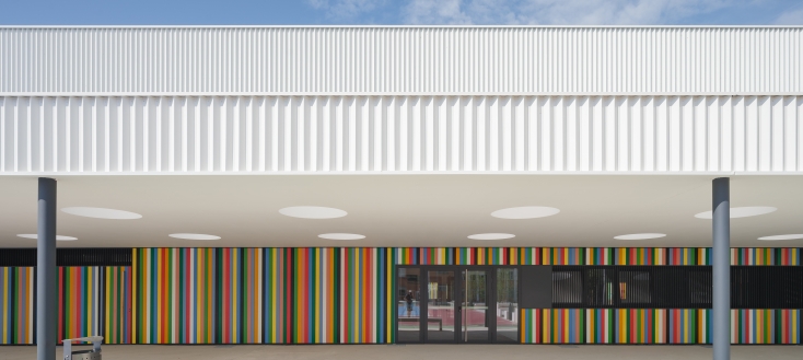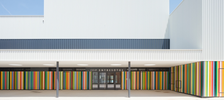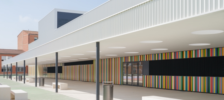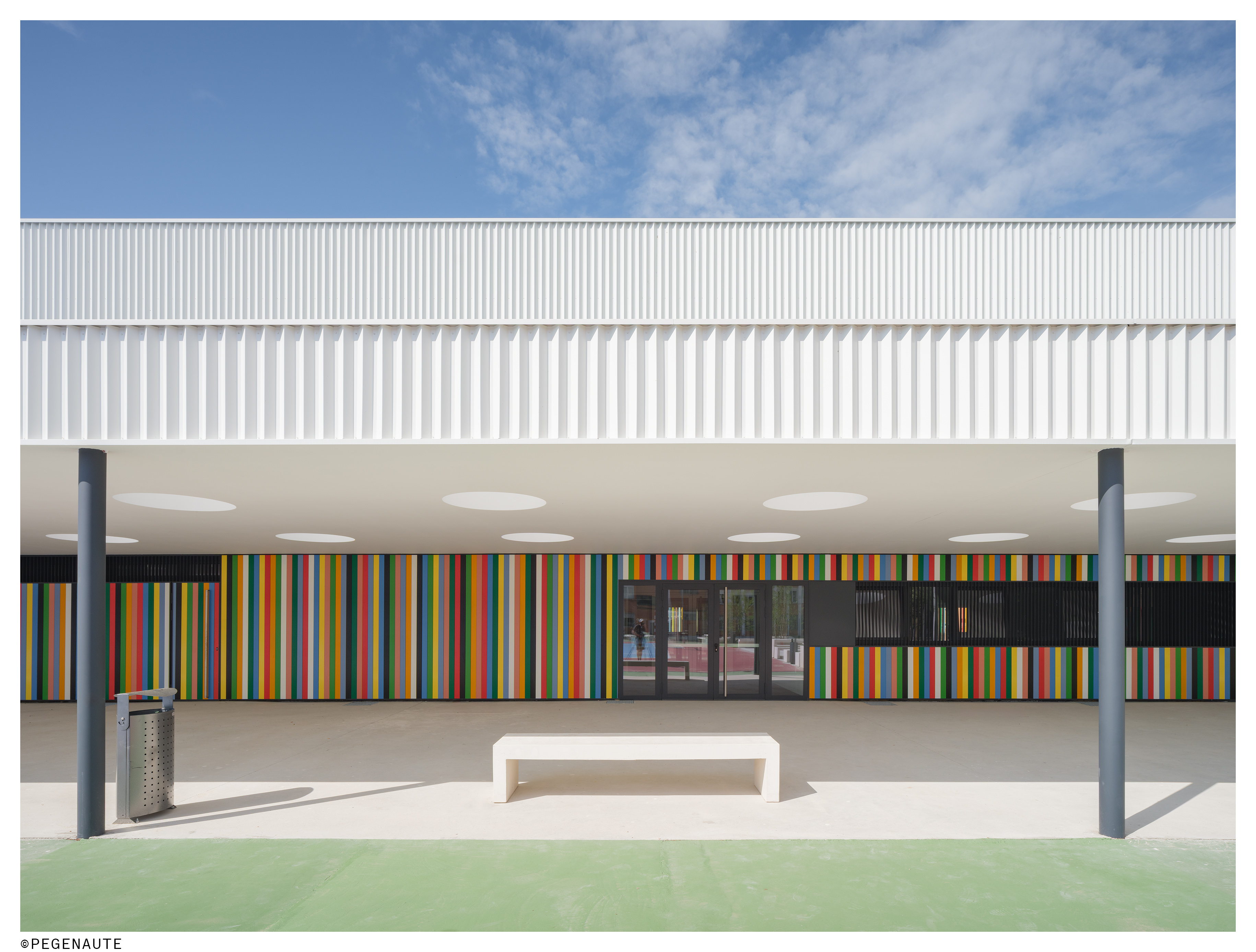 Perfil metálico Keops en color Blanco RAL 9010 en revestimiento Esmeralda Plus y perfil metálico Euroline 100 en color Blanco 880 y revestimiento Esmeralda Basic, postlacado en 10 colores distintos. | Arquitectura: Peralta Ayesa SLP | Fotografía: © Pedro Pegenaute | Constructora: Aransa Construcción