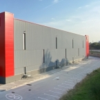 Perfiles metálicos Atenea y Minionda, ambos en color Gris RAL 7040 y en Esmeralda Plus; perfiles metálicos Eurobac 150 CD y Eurobase 48 CD, ambos en color Blanco 880 y Esmeralda Basic; paneles Galatea 1100 en color Blanco 880 y Galatea 1000 en colores Rojo RAL 3020 y Gris RAL 7043, todos en Esmeralda Plus. | Arquitectura: INEL, Arquitectura, Ingeniería y Management
