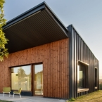 Perfil metálico Minionda en color Gris RAL 9006 y en Blanco 880 en revestimiento Esmeralda Plus y panel sándwich Nilho 1100 en color Gris RAL 9007 y revestimiento Esmeralda Plus. | Arquitectura: UNIA Arquitectura, con la colaboración de FAU Arquitectos…