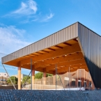 Perfil metàl·lic Keops en color Blanc RAL 9010 amb revestiment Esmeralda Plus i perfil metàl·lic Euroline 100 en color Blanc 880 amb revestiment Esmeralda Basic, postlacat en 10 colors diferents. | Arquitectura: Peralta Ayesa SLP | Fotografia: © Pedro…